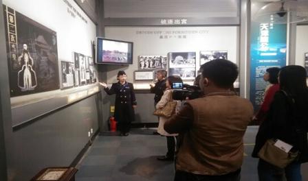 人民網(wǎng)“尋找歷史記憶 緬懷抗戰(zhàn)英烈”采訪團成員在長春偽滿皇宮博物院采訪。