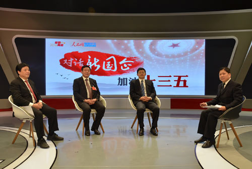 人民網(wǎng)北京3月7日電(彭心韞)3月5日晚,“對(duì)話新國(guó)企 加油十三五”系列網(wǎng)絡(luò)訪談第二場(chǎng)在人民網(wǎng)強(qiáng)國(guó)論壇演播室舉行。江西省國(guó)資委主任、黨委副書(shū)記陳德勤,江西省國(guó)資委副主任、黨委委員鄭高清,全國(guó)人大代表,江西銅業(yè)股份有限公司董事長(zhǎng)、黨委書(shū)記李保民,與特邀訪談主持人、國(guó)家行政學(xué)院研究員張春曉現(xiàn)場(chǎng)對(duì)話,共同探討“如何以管資本為主加強(qiáng)國(guó)資監(jiān)管”、“江西國(guó)資國(guó)企改革多項(xiàng)試點(diǎn)”、“江銅集團(tuán)的改革與發(fā)展”等相關(guān)話題。 【觀看訪談視頻及全文】
