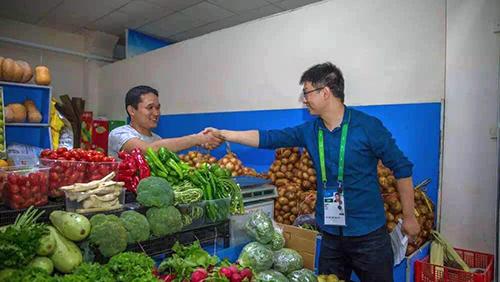 分發(fā)完盒飯,劉會(huì)彬說一會(huì)要去菜市場(chǎng)采購一次食材,邀請(qǐng)我們一同前往,小編當(dāng)然欣然應(yīng)邀。途中,又開心地交流起來。
