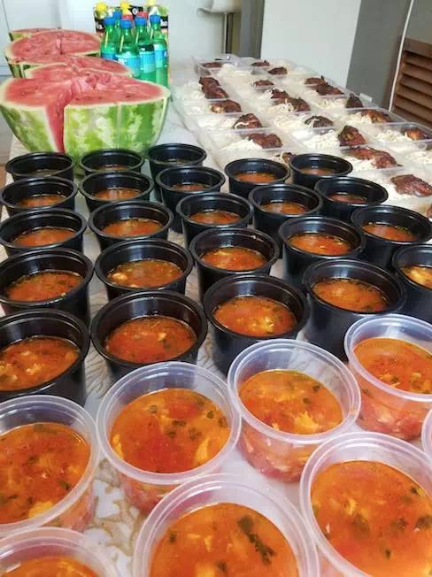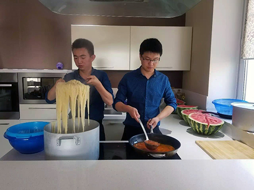原來兩位大廚沒有任何幫手,從采購到洗菜、做飯、分飯?jiān)俚剿惋、洗洗刷刷全靠他們,這可比在酒店只當(dāng)后廚辛苦多了。當(dāng)?shù)貤l件有限,沒有國內(nèi)的明火燃?xì)猓⑺顾{當(dāng)?shù)貜N房只有電磁爐,受熱較慢且不均勻,對(duì)于廚藝和耐力都是不小的挑戰(zhàn)。剛開始時(shí),沒采購到食堂用大型電飯鍋,每天只能用普通家庭電飯鍋一鍋一鍋蒸,每天12鍋,從早忙到晚。從5月底來到阿斯塔納將近3個(gè)月,兩位大廚沒有完整休息過一天。
