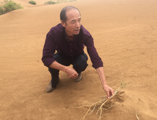 唐希明在治沙現(xiàn)場