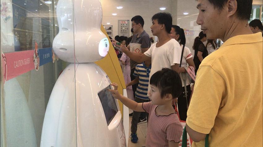 在廣州市婦女兒童醫(yī)療中心,與手機客戶端同步的導診機器人“咪姆熊”,還幫助患者導航至醫(yī)院的每個位置;根據(jù)指令,物流機器人“諾亞”可以自行乘坐電梯,將醫(yī)護人員所需藥品送達指定科室;新一代AI平臺能讀X光片和超聲數(shù)據(jù),還能在30秒內(nèi)診斷出2種眼科疾病......