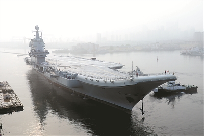 2018年5月13日,我國(guó)第二艘航母從大連造船廠(chǎng)碼頭啟航,赴相關(guān)海域執(zhí)行海上試驗(yàn)任務(wù)(圖片來(lái)源:新華社)