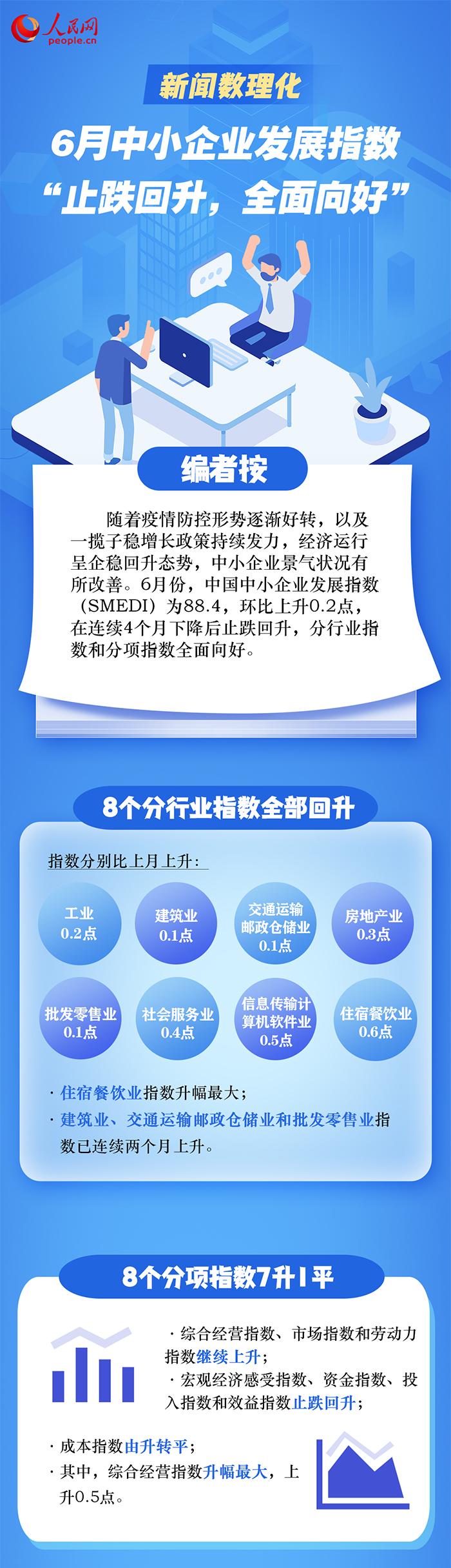 新聞數(shù)理化|6月中小企業(yè)發(fā)展指數(shù)全面向好 住宿餐飲業(yè)漲幅最大