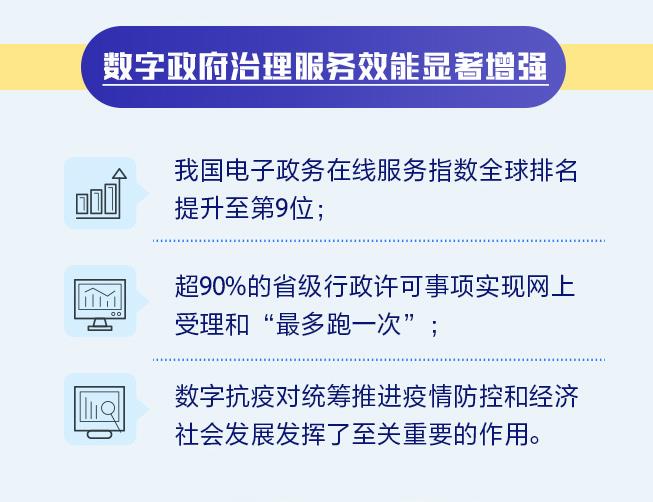 《報告》顯示,我國數(shù)字政府治理服務(wù)效能顯著增強(qiáng)。我國電子政務(wù)在線服務(wù)指數(shù)全球排名提升至第9位;超90%的省級行政許可事項(xiàng)實(shí)現(xiàn)網(wǎng)上受理和“最多跑一次”;數(shù)字抗疫對統(tǒng)籌推進(jìn)疫情防控和經(jīng)濟(jì)社會發(fā)展發(fā)揮了至關(guān)重要的作用。