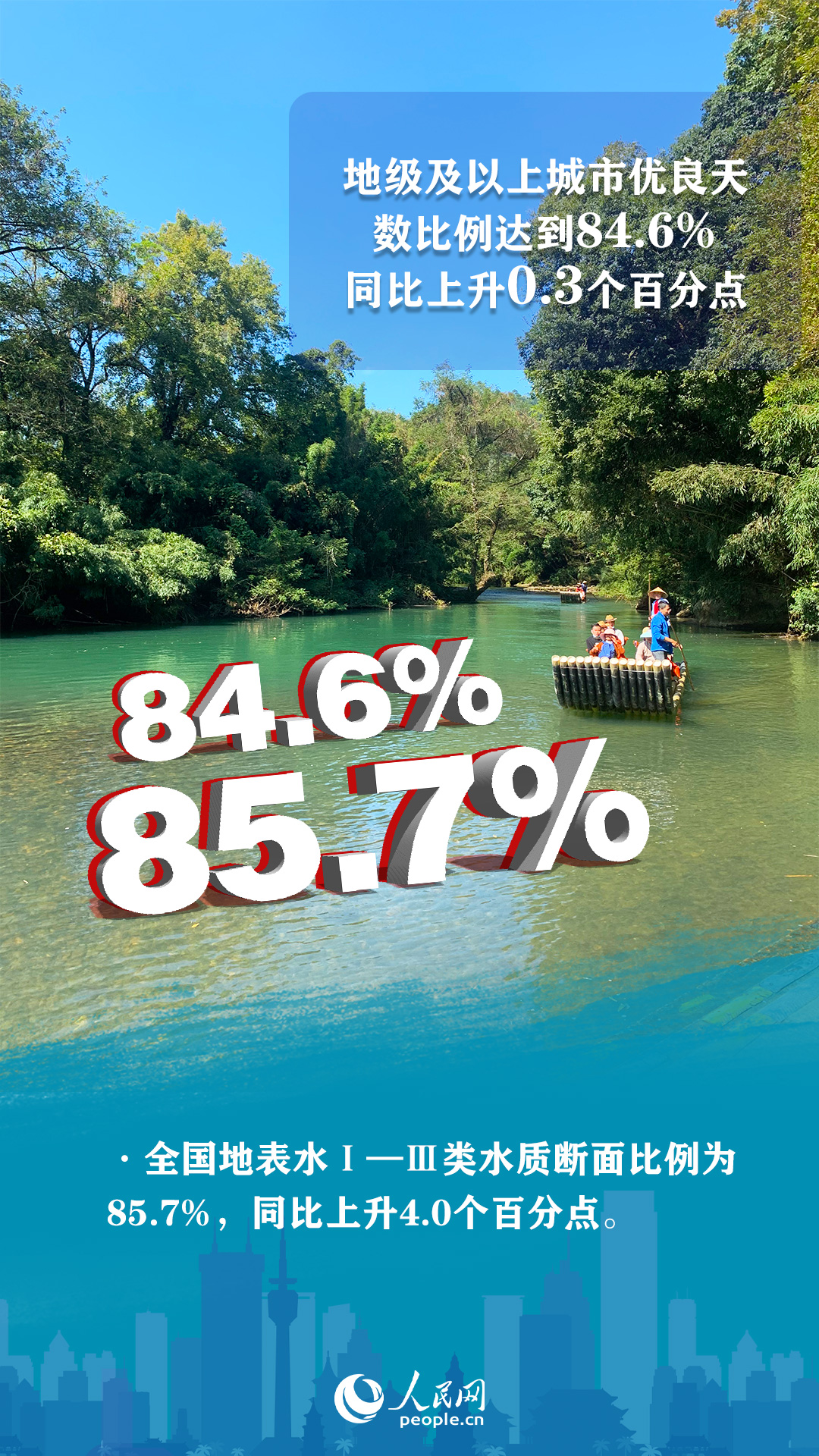 推進(jìn)重大工程實施。繼續(xù)加快實施“十四五”規(guī)劃102項重大工程中大氣、水、土壤、固體廢物污染防治和核與輻射安全監(jiān)管等生態(tài)環(huán)境領(lǐng)域重大工程項目。今年上半年,全國生態(tài)環(huán)境質(zhì)量持續(xù)改善。其中,地級及以上城市優(yōu)良天數(shù)比例達(dá)到84.6%,同比上升0.3個百分點。全國地表水Ⅰ—Ⅲ類水質(zhì)斷面比例為85.7%,同比上升4.0個百分點。