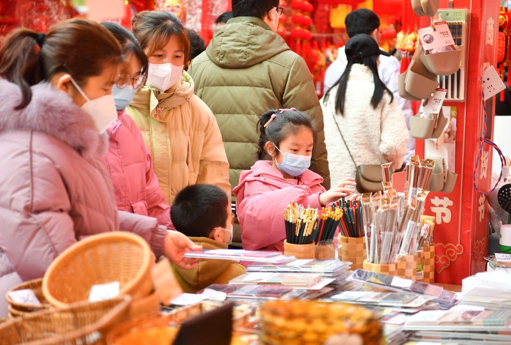 市民在西安西北小商品交易中心選購年貨。新華社記者 張博文 攝